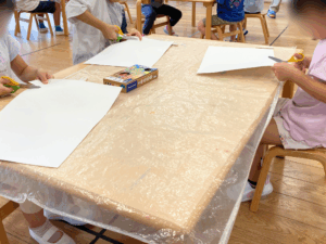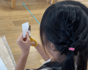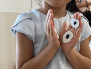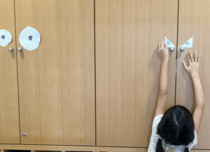 目をつけるのが楽しくて仕方ない様子の子どもたち。